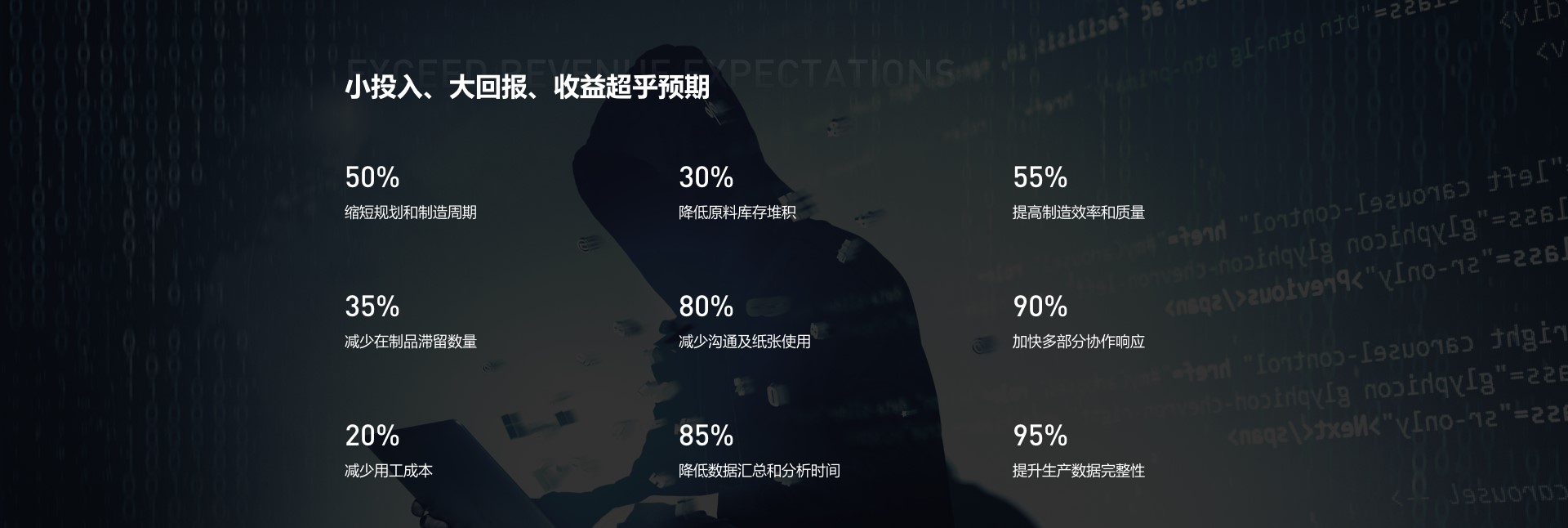 智能决策可根据工厂实际运转方式灵活配置,工厂中的每个角色都可以快速地获取协作所需的数据信息,帮助企业缩短生产周期、降低库存积压、提升产能利用率、透明化制造流程,完成智能工厂升级,提升企业的市场竞争力。